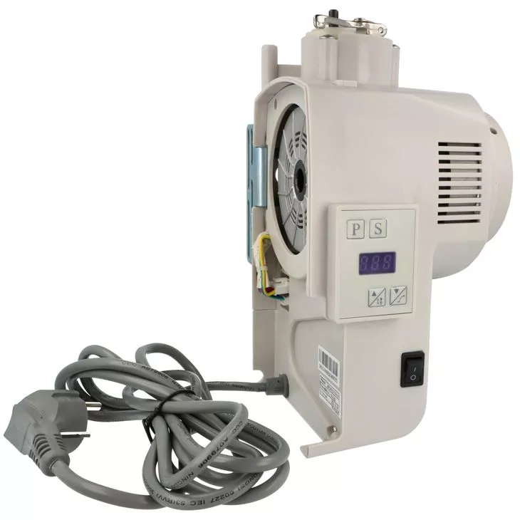 These servo motors are characterized by high durability thanks to the use of neodymium magnets (the magnets do not wear out, unlike brushed motors) and energy savings of up to 70% compared to traditional clutch motors. The motor has a power of 550W and is additionally equipped with a needle positioner, a stitch start button, and LED lights mounted on the needle bar.