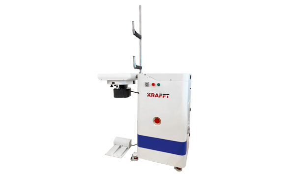 A specialized device for automatically threading the string in a sportswear belt. Efficiency is up to twice as high as manual stringing. Adjustable holding handle spacing allows the machine to be used with a variety of garment sizes.