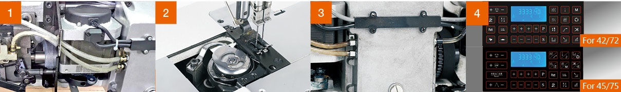 New straight-type thread trimming mechanism offers improved performance and easier adjustments.